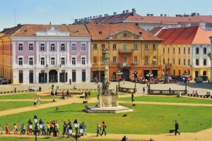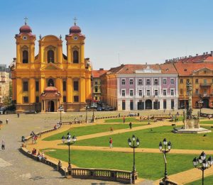 Piata Unirii este cea mai veche piata a Timisoarei. Este înconjurata de cladiri în stil baroc. Un timp s-a chemat Piata Domului. Numele de Piata Unirii îl poarta din 1919, atunci când Banatul a devenit parte a României. De-a lungul si de-a latul ei se gasesc Domul Romano-Catolic, Catedrala Ortodoxa Sârba, Casa Bruck si palatul Baroc. În interiorul Pietei se afla Monumentul Sfintei Treimi si fântâna cu apa minerala.