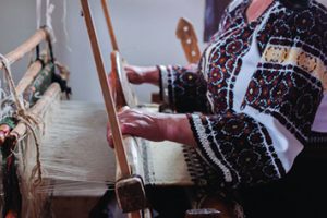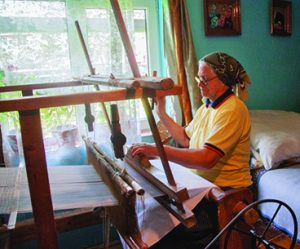 Maria Constantinescu este singura artizană din comuna Sadova care mai țese pânză din bumbac la războiul de țesut. Este o muncă foarte migăloasă, pe care a învățat-o de la mama ei încă de când era o copilă.