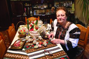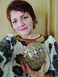 Lucia Zbranca pune cu măiestrie, pe coaja ouălor, toată bogăţia de simboluri a satului bucovinean: bundița, ia, prosopul, trăistuța, opincile şi multe altele. Totul a început în urmă cu 12 ani şi de atunci, cu ceară de albine și chișița, încondeiază ouă, transformându-le în mici opere de artă.