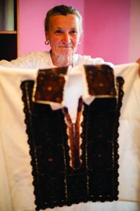 Zahara Botă confecționează integral manual, de aproximativ 8 ani, costume populare pentru bărbați și femei. Dragostea pentru munca pe care o face a dobândit-o de când era mică, de la mama ei, care i-a transmis iubirea față de portul popular.