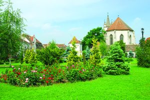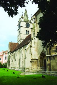 Biserica evanghelică domină centrul orașului – un valoros monument în stil romanic și gotic din Transilvania. În jurul ei se păstrează resturi de ziduri și turnul, din prima fortificație a orașului. De asemenea se mai păstrează din prima fază de construcție basilica romanică, construită după marea invazie tătară din 1241, ea are trei nave: absida, semicilindrica și două turnuri în vest. Acestea au fost înlocuite cu un turn central deasupra intrării: înalt de 40 metri și supraînălțat în a doua jumătate a secolului al XVII-lea. Totuși zidurile nu s-au dovedit de fiecare data destul de puternice în fața invadatorilor. În 1420 Imperiul Otoman invadează sudul Transilvaniei și distrug aproape întreaga Țară a Bârsei – cel mai greu lovit fiind orașul Brașov căruia îi este capturată întreaga conducere. În 1438 turcii își reiau atacul împotriva Transilvaniei și ajung sub zidurile Sebeșului care este cucerit și jefuit, locuitorii fiind târâți în sclavie. Dacă înainte de acest dezastru Sebeșul număra peste 2000 de locuitori, invazia otomană din 1438 a redus numărul sebeșenilor la sub 1000.